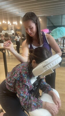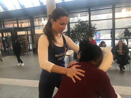 Nous avons l’habitude de travailler avec un public très dense comme à plus petite échelle. Nous adaptons la durée du massage en fonction du nombre de participants.